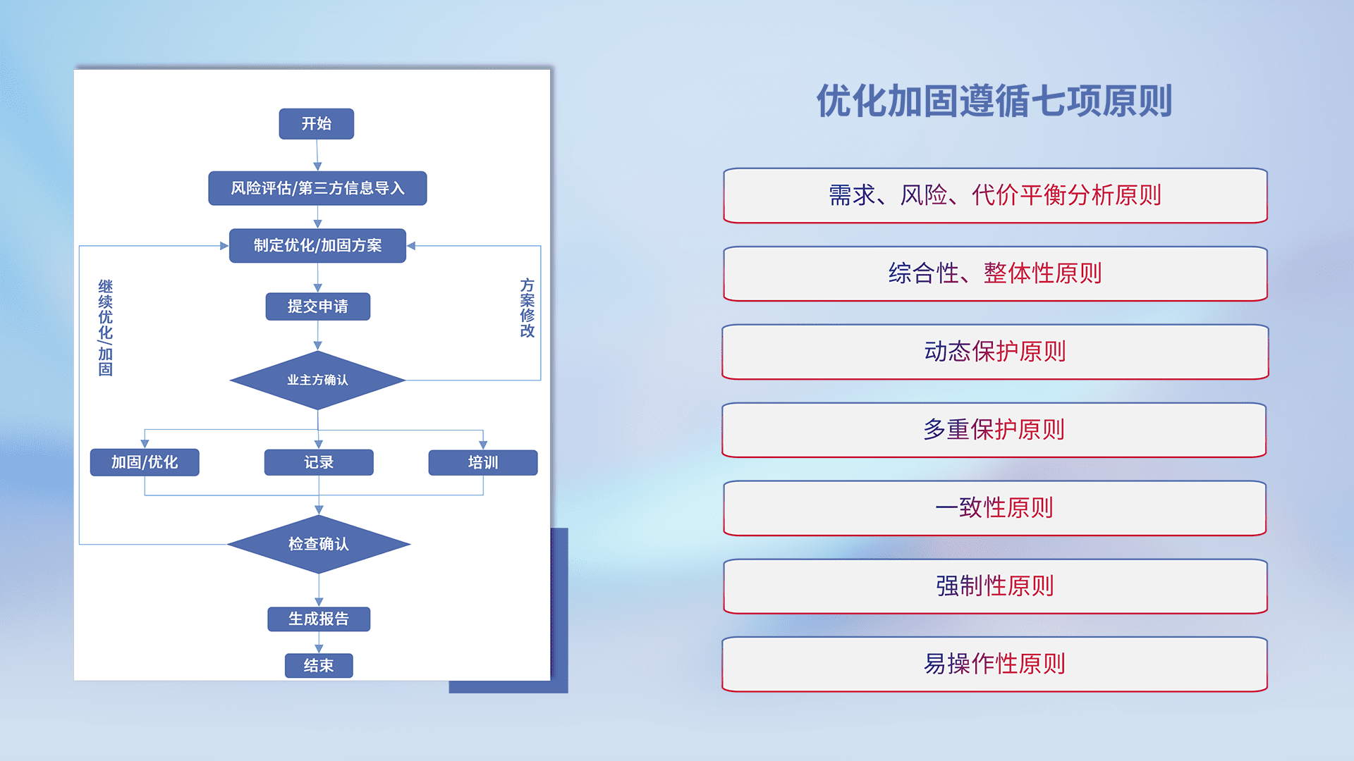 最大程度利用现有资产,,对评估发现的问题进行封堵与整改,,,,防止漏洞被利用,,提升整体网络安全性,,,,为客户带来高标准的优化加固服务。。
